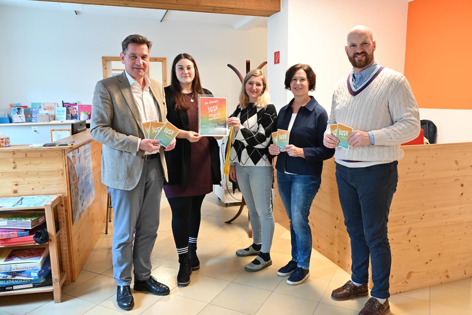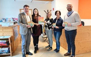 Auf dem Foto: Bürgermeister Werner Krammer, Sozialarbeiterinnen Carina Pflügl, Christiane Längauer, Birgit Fabian (Leiterin Referat Familie, Jugend und Soziales) und Vizebürgermeister Armin Bahr.